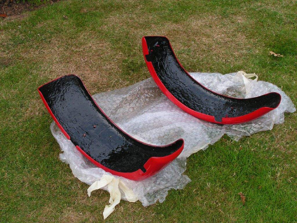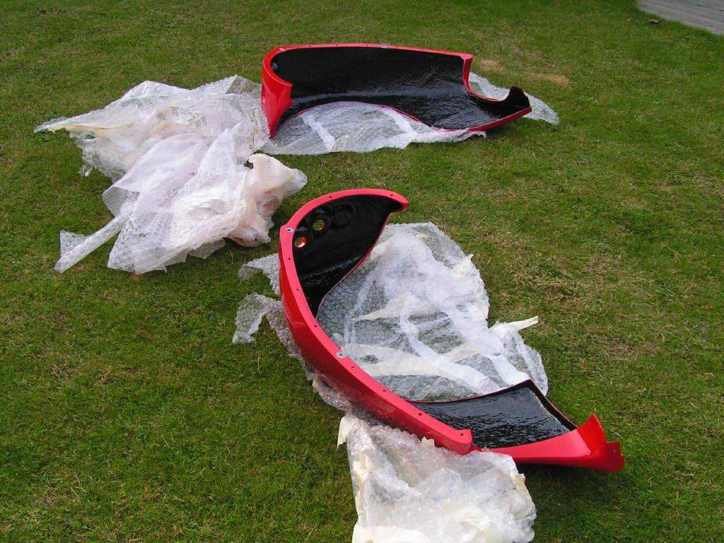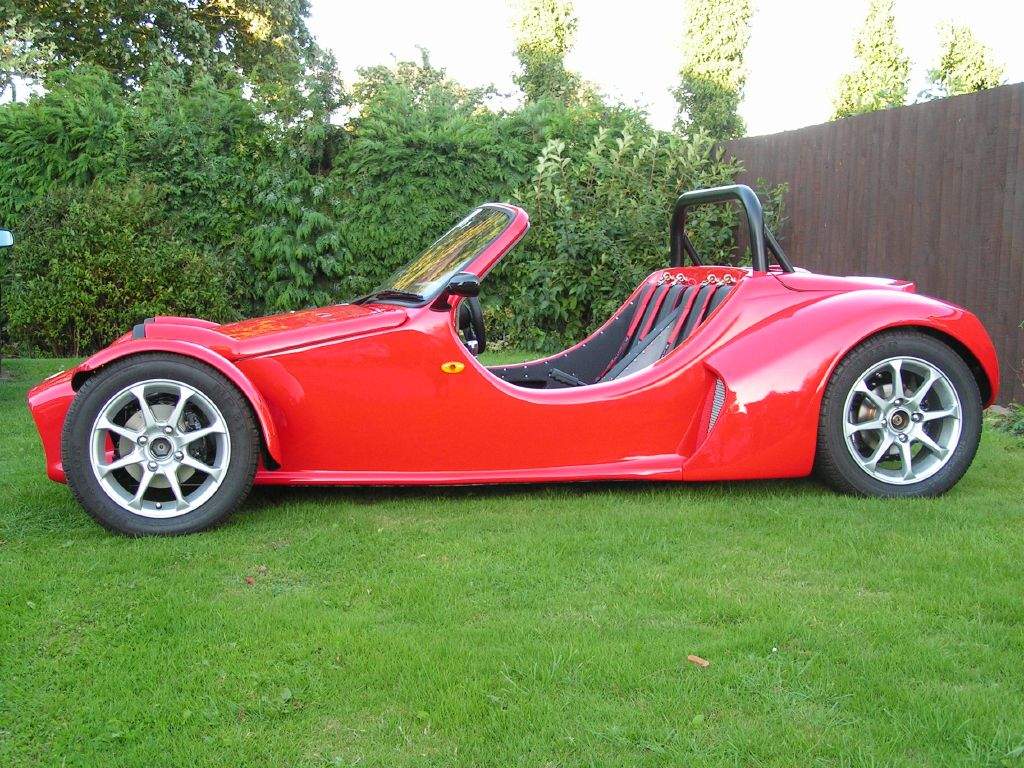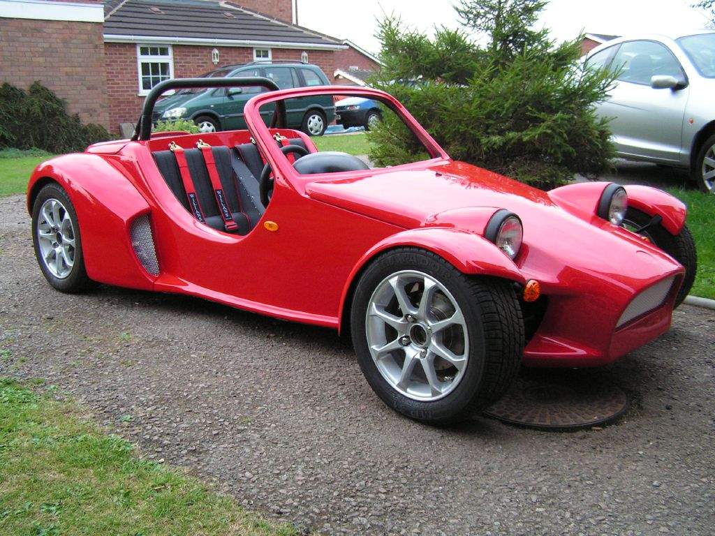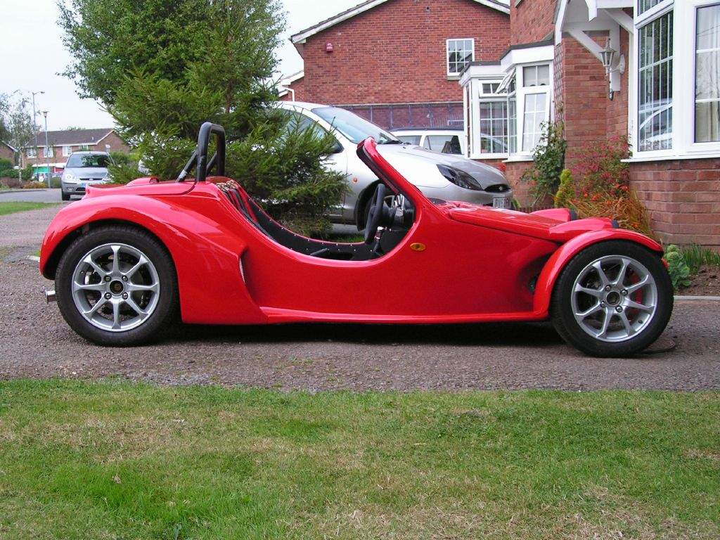 1st August: 6h00m: Blimey, it's August already! I'm hoping to get the car finished this month, so the next few weeks will be manic. Checked that the dashboard was dry, and then began re-assembly. This was a frustratingly time consuming process, but eventually, all the gauges, switches and warning lights were back in place. Made an attempt to set up the tracking more accurately. I did this in the garage so that the floor was roughly level, setting up a string line down each side of the car, parallel with the centre line of the chassis. I then used the string as a reference to measure to the front and rear edge of each wheel rim. To start with, I've simply set the car up with approximately zero toe at all four corners- in the long run, the front in particular will need fine tuning. As for camber, I just checked visually that things didn't look too wild, and will get this set properly post SVA. Fitted the wiper motor to the tub, having finalised how it is being wired up. I've had to abandon my original plan of using the intermittent function, so it will now be a simple 2 position switch, one being the 'parked' position, the other being a constant speed (since mine is a 2 speed motor, I can connect either the 'fast' or the 'slow'- I've gone for 'slow' for the time being, but a change is just a matter of scrabbling about under the dash to change over one connection). I moved on to paint the insides of all four wings with 'liquid rubber', bought from B&Q. This should help to resist star cracks appearing in the body as stones are thrown up onto the lower surface. Last jobs of the day were to wire up the rear number plate lights and fog light. 2nd August: 3h30m: Applied some black sealant to the driver's side in-fill panel, to help keep out stuff thrown up by the rear wheels. Also sealed the join between the body and the floor panel by applying a thin bead along the outside. At this point the heavens opened so a quick retreat to the garage was made. Decided that the next job was to get the dashboard installed, so that I can get the engine running again to check everything seems OK before putting the rear wings on. Paranoid about scratching either the dash or the body, I depleted the world supplies of bubble wrap... I knew that this task was going to be a pain, and so it turned out! Because I have mounted the battery isolator switch on the dash, I have to run the main battery cables behind the dash, and getting these into position is a pain. I ended up with the dash more or less in the right position, but angled so that the dials were pointing skywards. I then managed to manoeuvre myself into the footwell with my head under the dash, legs hanging over the roll-over bar- mmmm, comfortable! I was still having to work in a very limited amount of space behind the dash, but managed to get things connected up. The trouble was, the dash was then reluctant to be moved into its final position, but with a bit of fiddling, it went into place. I just need to try and check that no cables are being squashed- I think getting the dash back out again, especially after the screen is fitted, could be very difficult! 3rd August: 3h00m: Phoned intatrim to chase the delivery of my seats- they should arrive tomorrow! Had a further look at the dashboard, and decided I needed to re-route one of the battery cables... So, the dash came out again! A couple of hours later I was happier with the result, so you can imagine how my heart sank when I connected the battery and one of my circuits was dead. I went inside and ate my tea whilst trying to stem the flow of steam from my ears! Returning to the garage, determined to get the dash finally fixed in place, I once again took up the 'footwell position' and tried to check the wiring without removing the dash again. Hey presto, a connector had mysteriously separated itself from the fuse box. Pushing it back on, it was clear that the connector in question had lost its grip on the blade of the fusebox, so a quick squeeze with the pliers and all was sorted. Phew! Everything now seemed to work OK, although I haven't yet connected most of the external lights (at the moment, side repeaters, a rear fog light and 2 rear number plate lights are the only ones). Before going any further, I wanted to check that the engine ran OK. I had not yet run the engine on the new fuel line I put in quite a while ago, plus the engine had been sat for a couple of months without turning over, so it seemed a sensible thing to check before I started bolting on more things. So, I turned the key to get the fuel pump running, doing so repeatedly until fuel had reached the carbs (those clear fuel filters are useful for checking this). Then, I went for it and turned it over. A couple of coughs and it roared into life and settled to a good idle! Excellent! I left it running for 10 minutes or so, and everything seemed OK. The bulkhead seemed to stay a little cooler with the heat reflective mat fitted, the stat opened, and the temp was heading towards 90 degrees when I switched back off. With those successes behind me, I fitted the heater vents and distribution box to the dash, followed by the trim piece I made a couple of weeks ago to fill the gap between the dash and the body. It is now starting to look pretty nice! (even if I do say so myself...) 4th August: 1h30m: Seats arrived between me leaving for work and Liz leaving for work, so I'm now going to send off the the SVA form! I've requested 20th August as a test date, so let's see what happens... Once I got home, I unpacked the seats and tried them in place- they look great. Pushed the car up onto my wooden ramps to allow me to run a bead of sealant along the join between the tub and floor panel on the passenger side, and also sealed around the infill panel. 5th August: 4h00m: Covered the tunnel top panels in foam and vinyl, and glued the gear lever gaiter that Mum had posted back to me onto the surround before bolting it to the tunnel panel. A quick measure o