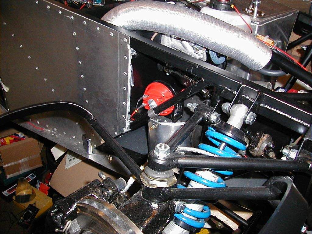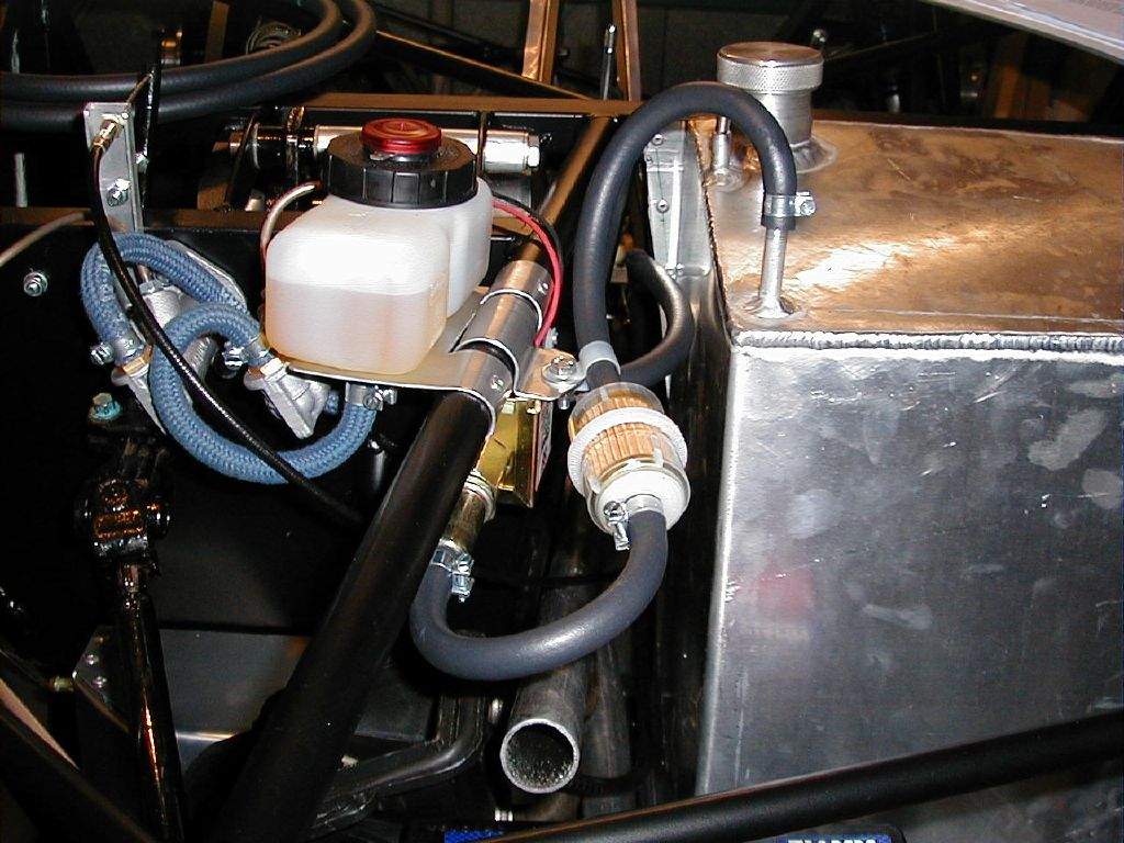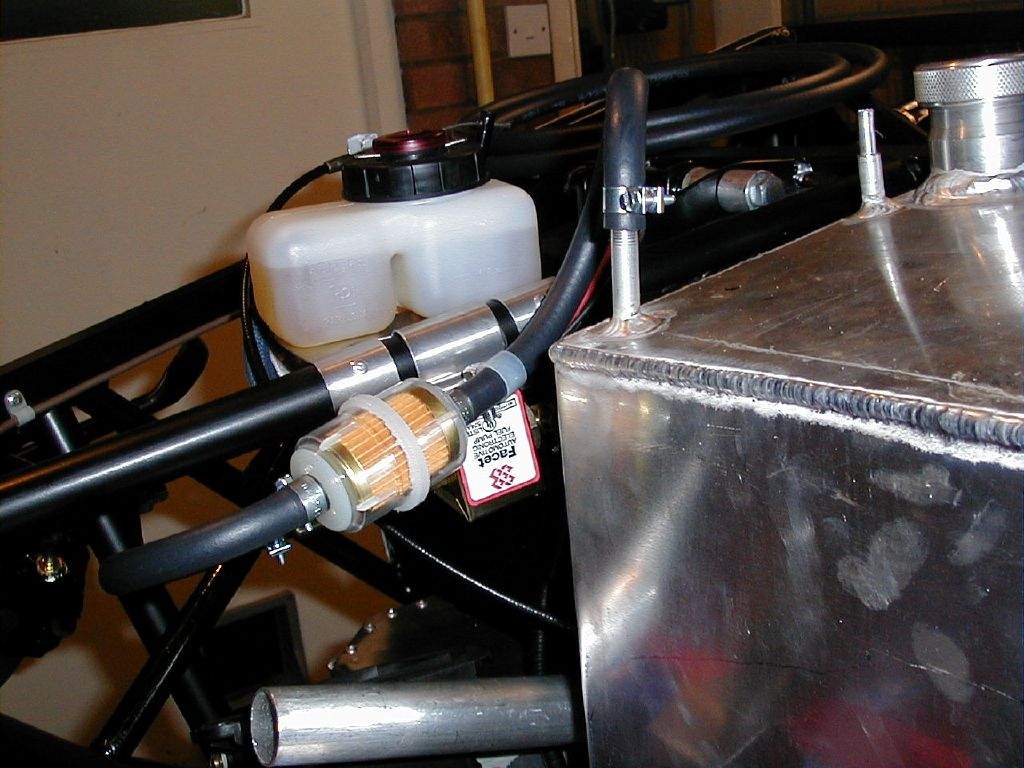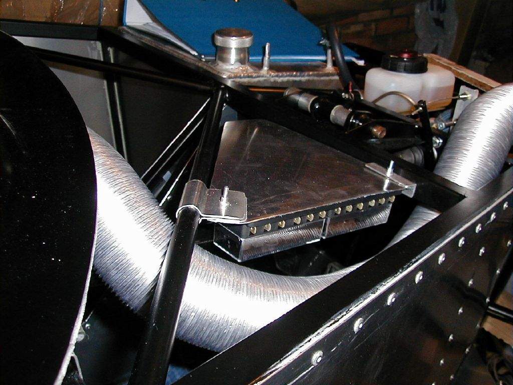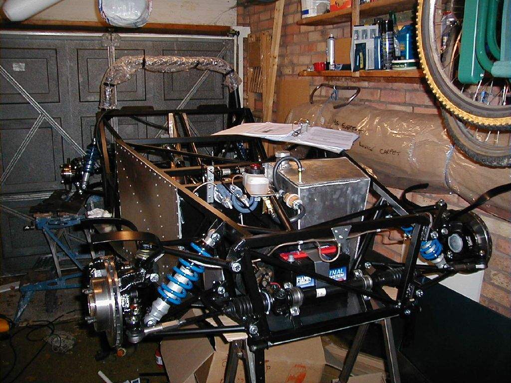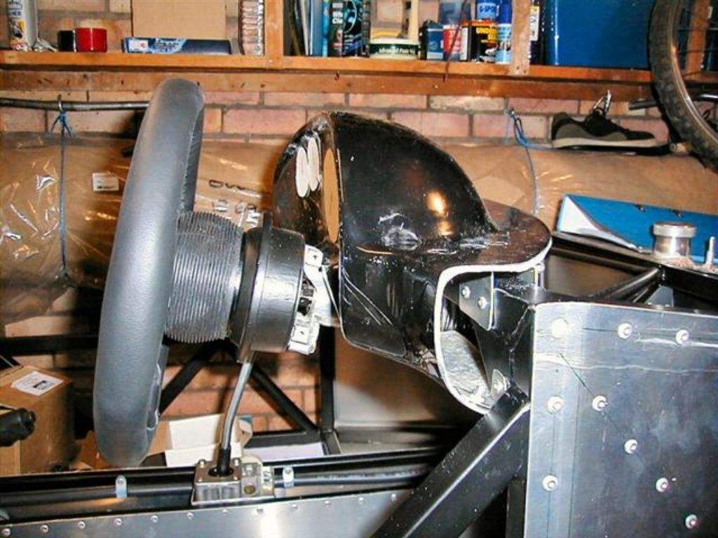 Spent some time trying to decide how to mount the fuel pump. I've gone for a Facet solid state 'fast road' pump as so many people have had bad experiences with the interrupter type. Finding somewhere to mount it neatly was proving challenging though. I finally came up with a plan which mounted the pump upside down beneath the brake fluid reservoir, and began to cut out a suitable bracket. To give some level of isolation between the pump and the chassis, I'm effectively clamping the bracket around the circular chassis member with some bike inner tube in between. This method also saves having to drill more holes in the chassis! 2nd December: 3h30m: Had the day off work today, so made reasonable progress. Finished the fuel pump bracket and then went on to mount the pump and connect all the pipework, including an additional pre-filter just to be on the safe side. I'm pleased with how neatly this has worked out. Went on to make a securing strap for the battery in its new location. Paid a visit to the scrapyard in the afternoon, and came back with some radiator hose (which may suit the connection between the radiator and the tunnel pipes) and an alternator from a Bedford Rascal! (These are well known for being small and light Japanese alternators, quite a few people have mounted them to Zetecs in the past, I'll just need to make up a suitable mount) 3rd-7th December: 3h00m: Began to think about the wiring in earnest! I've decided to build a loom from scratch, rather than adapting a donor loom or buying a generic loom from Premier Wiring. At first I thought this was mad, but having had some discussions with various kit-car builders (rather strangely, Steve, Steve and Steve... do I know any Steve's who aren't building a kit?) I've decided to go for it. The loom will be bespoke to my car, I'll know it inside out and everything will operate exactly how I want it to. A couple of library books, and some example wiring diagrams off the net (locost7.info & Paul Toynes pages) have given me the information I needed to get drawing my own wiring diagrams. Hence, not a lot has been done in the garage...! 8th December: 0h30m: Bought relays, some aluminium duct and a few other bits and pieces. Trial fitted the ducting along the route from the heater blower to under the dash- I think it'll be fine. 9th-12th December: 3h00m: Not really done any work in the garage, but have been having fun continuing with my wiring diagrams... 13th December: 2h30m: Spent a while making a list of stuff to order from Vehicle Wiring Products on Monday morning. Paid a visit to the bodywork (stored in a friend's garage) to take some measurements to enable me to fit the dashboard in the correct position. Then I began to cut out a section from the dash moulding to fit around the steering column. This is the first cutting and filing of GRP that I've done- be prepared for lots of dust! Didn't have time to finish the fine tuning of the cut-out, another job for tomorrow. 14th December: 3h00m: Continued to cut out the dash around the steering column. The height at which to fit the dash turns out to be mainly dictated by getting the 2 main gauges visible behind the steering wheel. As I'm fairly tall (at 6'2") my line of sight is quite high, which meant fitting the dash on the low side (well, that's what it looks like when compared with the pictures on the Sylva website), but this shouldn't be a problem. With the dash now sat in