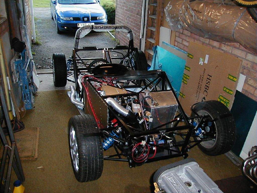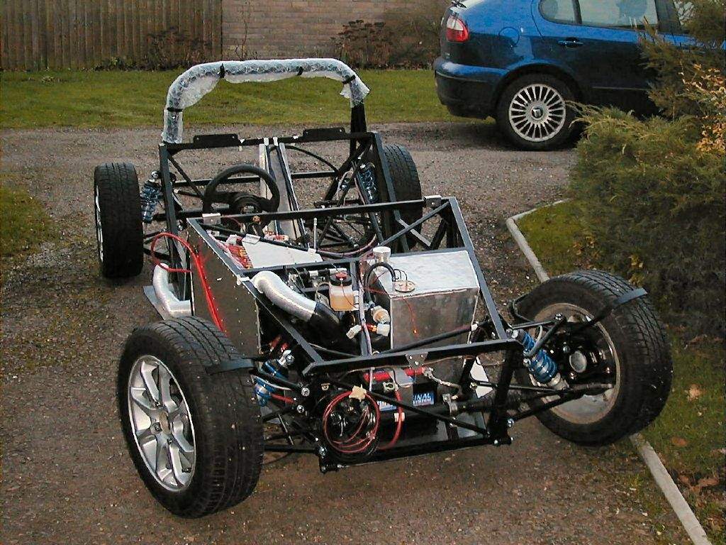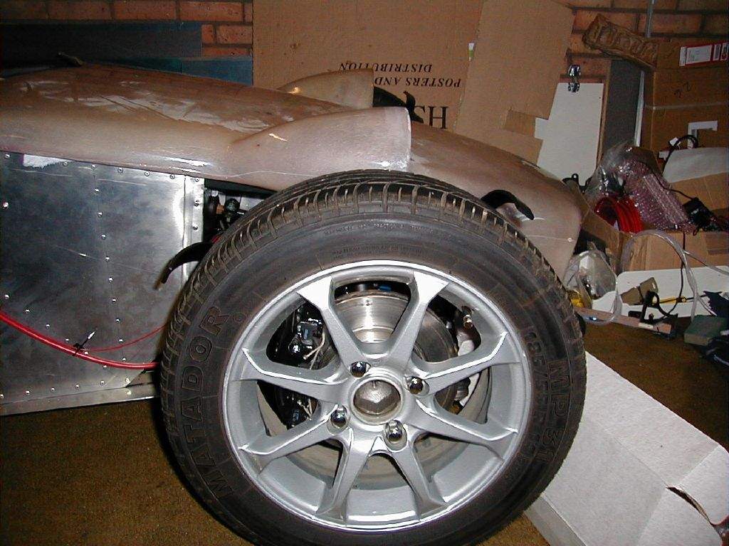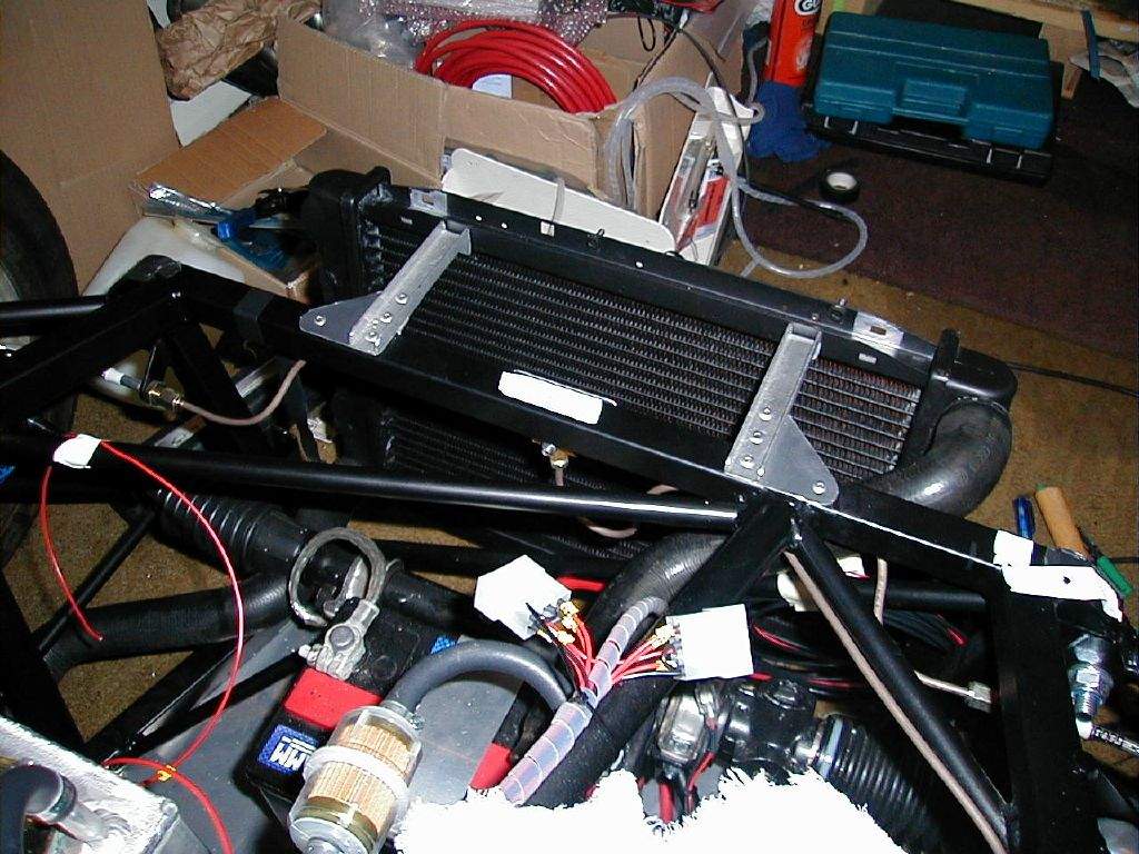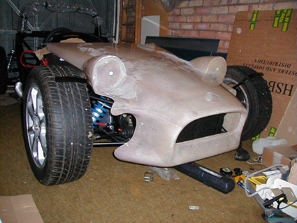 Also ordered a few bits at the local Ford dealers. Once back home, I had a bit of a sort out in the garage, which has become a bit of a tip, in preparation for getting the Mojo off the stands on Sunday! Also rigged up the horn connector from the Sierra- it works perfectly! 7th Feb: 2h00m:Realised that the Sierra steering column electrical connector for the horn was not quite working correctly (horn functionality being dependant on the steering wheel angle probably won't pass SVA!), so had to tweak the position of the column outer and inner and also the electrical contacts to get things to work. This meant the dash cutout around the column no longer fitted, so out came the dremel multitool again to make things fit. Then continued with the clear up operation in preparation for tomorrow… 8th Feb: 7h00m: Spent some time in the morning finishing clearing up- wow, there is a carpet in the garage after all! It's not been visible for some time… Re-bled the brakes before fitting the wheels (the rear callipers have to be unbolted from the uprights to bleed correctly, so it's best done now!). At 2.30 a load of friends arrived to help lift the car down- thanks to everyone (you know who you are!) for the muscle power! This went without a hitch, and we then spent quite a while gawping at how small the Mojo looked now it was on the floor. The dash top is just above my knee when I stand next to it! Once everyone had left, I spent some more time sat behind the steering wheel. This car is going to be low! Once I'd stopped dreaming of driving the Mojo on a hot summers day, got back down to some work… -Fitted the dash top mount rivnuts and bolts -Drilled a final hole in the dash for the newly acquired super-bright red LED shiftlight (hadn't intended having one, until I decided on the Emerald ECU which has as standard a shiftlight output, hence had to find a space on the dash!) -Made a small bracket to secure the heater duct as it passes above the drivers footwell. -Had a further think about an idea Jeremy Philips had given me a while ago- mounting a shelf in the top half of the footwells, above the driver's/passenger's feet & lower legs. As stowage space is very limited in the Mojo, I'm keen to make use of any nooks and crannies that I can find. I'd make the shelf removable, so it can be fitted as and when needed. Anyway, to assess how practical it would be, I made up a cardboard template before calling it a day and crashing in front of the TV for an hour… 9th Feb: 1h00m: Pushed the Mojo out onto the driveway for some better piccies: Took a closer look at the wiper mechanism to try and work out what the 5 wires are supposed to connect to- I think I'm going to need a look at a Haynes manual! 10th Feb: 1h00m: Got hold of a Fiat Uno wiring diagram in order to test the wiper motor. The one I've got seems to have a 'fast' and an 'intermittent' speed, not quite what I expected, but actually quite handy, as all the intermittent electronic jiggery-pokery is enclosed within a little plastic housing attached to the wiper mechanism. 11th Feb: 1h30m: Decided it was time to do some more work on the engine in preparation for getting it installed in the not too distant future. I unbolted the old clutch cover, and removed the clutch from the flywheel. The flywheel friction surface had some surface rust which I cleaned off. I then offered up the new clutch and cover plate, at which point I realised the new clutch and cover were smaller than the original! At first I guessed I had been given the wrong replacement part, but just to check, I dug up from the web what diameter clutch should be fitted to 1800 zetecs of Escort origin- 220mm. My replacement clutch was 220mm. Oh dear. Tape measure on the old clutch revealed that my engine had a 240mm clutch, and correspondingly different flywheel- and frustratingly, a flywheel that will not fit into the bellhousing of the gearbox. Hmm. Looks like I'm going to be after a new flywheel then! 12th Feb: Spotted a WSCC member who had advertised a 1.8 zetec flywheel in early January, so emailed to find out whether it had been sold. Result! It was still available, and was only 45mins up the M6. 14th - 22nd Feb: I was away holidaying in Spain all week, so no work on the Mojo! 25th Feb: 2h00m: Decided that I could probably make a start at fitting the radiator. This means taking an educated guess at where the bonnet is going to sit, and then trying to accommodate the radiator within the nose. I attached some bits of radiator hose to the radiator which enabled me to wedge it at a variety of angles, so I could then trial fit the bonnet to see how things looked. This proved to be a lengthy process, and I didn't really find a solution I was happy with. 26th Feb: 2h30m: Spent even more time fiddling with radiator mount positions. Finally came up with a new solution that I was happy with, routing the top radiator hose firstly downwards and then through the front of the chassis, rather than over the top rail as I had previously planned. Started to devise the brackets to hold it all in place. 27th Feb: 3h00m: Realised that I could improve the radiator mounting by cutting down one of my rubber radiator hoses slightly. Then continued with the top radiator mounting brackets. 28th Feb: 2h00m: Picked up my flywheel in the morning, it's in very good condition compared with the one originally fitted to my engine, so I was happy with the deal- £20 including 6 brand new flywheel bolts. Combined the trip with a visit to Stafford Vehicle Components to pick up a 'budget' radiator fan- again good value at £30 compared with anything else I've seen (I was loathed to fit a scrapyard fan). Did manage to get a couple of hours in the garage once back home. Firstly, I bolted the flywheel on using the new bolts, and torqued to 110Nm. This was 'entertaining' to say the least- as well as locking the flywheel, I had to stop the whole engine from falling over as I tried to torque the bolts up! The locking 'mechanism'