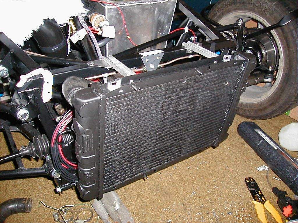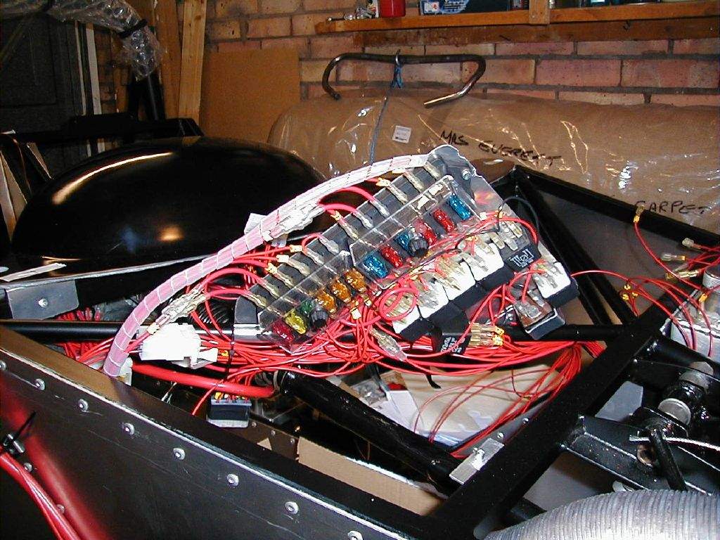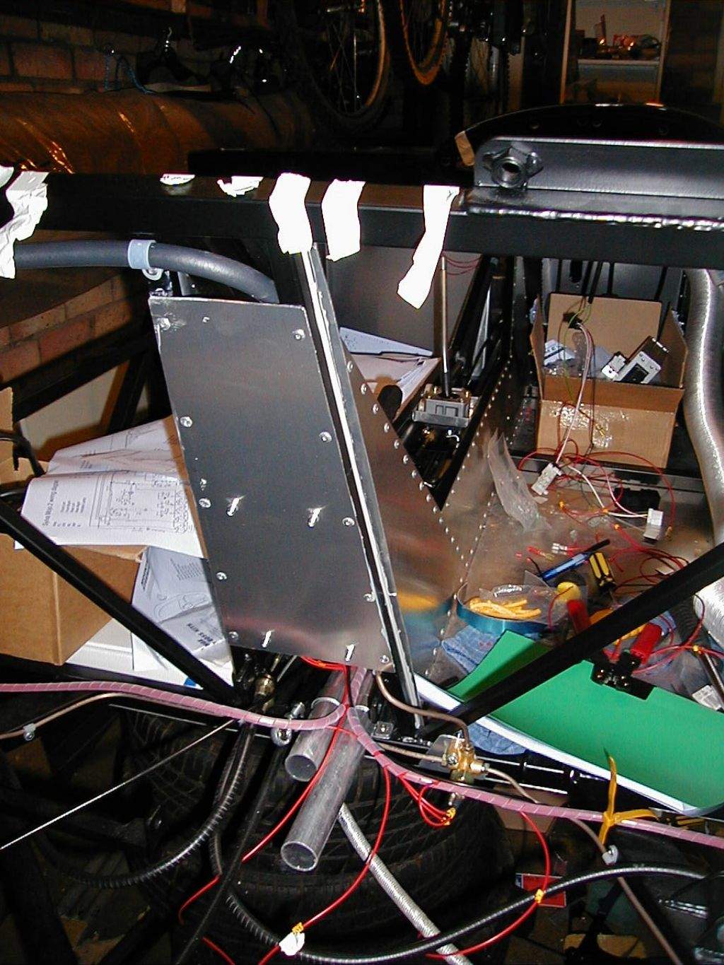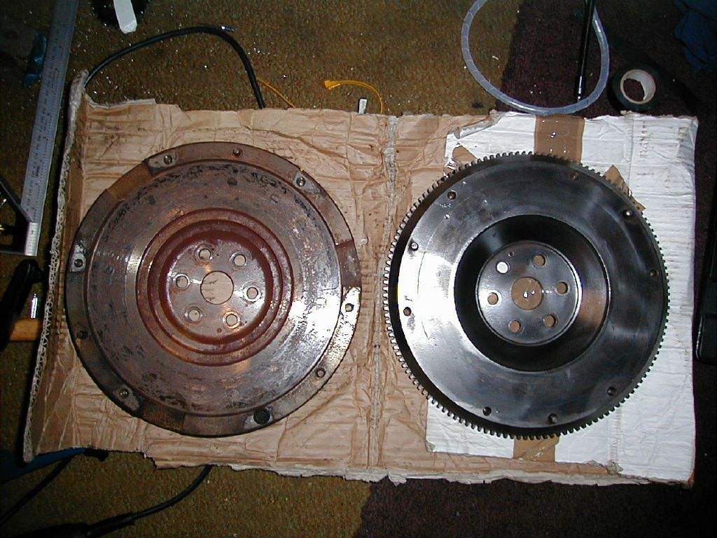 Also ordered a few bits at the local Ford dealers. Once back home, I had a bit of a sort out in the garage, which has become a bit of a tip, in preparation for getting the Mojo off the stands on Sunday! Also rigged up the horn connector from the Sierra- it works perfectly! 7th Feb: 2h00m:Realised that the Sierra steering column electrical connector for the horn was not quite working correctly (horn functionality being dependant on the steering wheel angle probably won't pass SVA!), so had to tweak the position of the column outer and inner and also the electrical contacts to get things to work. This meant the dash cutout around the column no longer fitted, so out came the dremel multitool again to make things fit. Then continued with the clear up operation in preparation for tomorrow… 8th Feb: 7h00m: Spent some time in the morning finishing clearing up- wow, there is a carpet in the garage after all! It's not been visible for some time… Re-bled the brakes before fitting the wheels (the rear callipers have to be unbolted from the uprights to bleed correctly, so it's best done now!). At 2.30 a load of friends arrived to help lift the car down- thanks to everyone (you know who you are!) for the muscle power! This went without a hitch, and we then spent quite a while gawping at how small the Mojo looked now it was on the floor. The dash top is just above my knee when I stand next to it! Once everyone had left, I spent some more time sat behind the steering wheel. This car is going to be low! Once I'd stopped dreaming of driving the Mojo on a hot summers day, got back down to some work… -Fitted the dash top mount rivnuts and bolts -Drilled a final hole in the dash for the newly acquired super-bright red LED shiftlight (hadn't intended having one, until I decided on the Emerald ECU which has as standard a shiftlight output, hence had to find a space on the dash!) -Made a small bracket to secure the heater duct as it passes above the drivers footwell. -Had a further think about an idea Jeremy Philips had given me a while ago- mounting a shelf in the top half of the footwells, above the driver's/passenger's feet & lower legs. As stowage space is very limited in the Mojo, I'm keen to make use of any nooks and crannies that I can find. I'd make the shelf removable, so it can be fitted as and when needed. Anyway, to assess how practical it would be, I made up a cardboard template before calling it a day and crashing in front of the TV for an hour… 9th Feb: 1h00m: Pushed the Mojo out onto the driveway for some better piccies: Took a closer look at the wiper mechanism to try and work out what the 5 wires are supposed to connect to- I think I'm going to need a look at a Haynes manual! 10th Feb: 1h00m: Got hold of a Fiat Uno wiring diagram in order to test the wiper motor. The one I've got seems to have a 'fast' and an 'intermittent' speed, not quite what I expected, but actually quite handy, as all the intermittent electronic jiggery-pokery is enclosed within a little plastic housing attached to the wiper mechanism. 11th Feb: 1h30m: Decided it was time to do some more work on the engine in preparation for getting it installed in the not too distant future. I unbolted the old clutch cover, and removed the clutch from the flywheel. The flywheel friction surface had some surface rust which I cleaned off. I then offered up the new clutch and cover plate, at which point I realised the new clutch and cover were smaller than the original! At first I guessed I had been given the wrong replacement part, but just to check, I dug up from the web what diameter clutch should be fitted to 1800 zetecs of Escort origin- 220mm. My replacement clutch was 220mm. Oh dear. Tape measure on the old clutch revealed that my engine had a 240mm clutch, and correspondingly different flywheel- and frustratingly, a flywheel that will not fit into the bellhousing of the gearbox. Hmm. Looks like I'm going to be after a new flywheel then! 12th Feb: Spotted a WSCC member who had advertised a 1.8 zetec flywheel in early January, so emailed to find out whether it had been sold. Result! It was still available, and was only 45mins up the M6. 14th - 22nd Feb: I was away holidaying in Spain all week, so no work on the Mojo! 25th Feb: 2h00m: Decided that I could probably make a start at fitting the radiator. This means taking an educated guess at where the bonnet is going to sit, and then trying to accommodate the radiator within the nose. I attached some bits of radiator hose to the radiator which enabled me to wedge it at a variety of angles, so I could then trial fit the bonnet to see how things looked. This proved to be a lengthy process, and I didn't really find a solution I was happy with. 26th Feb: 2h30m: Spent even more time fiddling with radiator mount positions. Finally came up with a new solution that I was happy with, routing the top radiator hose firstly downwards and then through the front of the chassis, rather than over the top rail as I had previously planned. Started to devise the brackets to hold it all in place. 27th Feb: 3h00m: Realised that I could improve the radiator mounting by cutting down one of my rubber radiator hoses slightly. Then continued with the top radiator mounting brackets. 28th Feb: 2h00m: Picked up my flywheel in the morning, it's in very good condition compared with the one originally fitted to my engine, so I was happy with the deal- £20 including 6 brand new flywheel bolts. Combined the trip with a visit to Stafford Vehicle Components to pick up a 'budget' radiator fan- again good value at £30 compared with anything else I've seen (I was loathed to fit a scrapyard fan). Did manage to get a couple of hours in the garage once back home. Firstly, I bolted the flywheel on using the new bolts, and torqued to 110Nm. This was 'entertaining' to say the least- as well as locking the flywheel, I had to stop the whole engine from falling over as I tried to torque the bolts up! The locking 'mechanism'