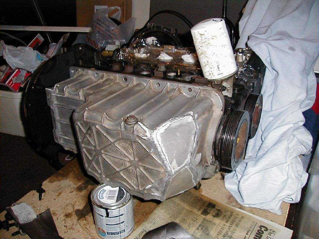 1st Feb: 5h30m: Continued spiral binding the loom, so that the separate runs to the rear corners are now all wrapped too. I'm really pleased with how this is looking now- the spiral binding is from Maplin Electronics and is pretty cheap at £2.49 for 10m! I'm planning to get the engine fitted within the next few weeks, so I need to do various jobs that will be difficult once that lump is sat in the back! First of these was to sort out the mounting of the ECU. I wanted to locate the ECU in the rear of the tunnel, mounted on two angle brackets which in turn fit with rivnuts to a panel across the rear of the tunnel. This panel does not completely cover the end of the tunnel due to all the gubbins that runs along this route, but it should help to keep out road grime and dampness. An extra relay is also mounted to the panel, this is controlled by the ECU, and switches the main feed to the coil pack from a take off that will wire to the main battery feed at the starter. 2nd Feb: 2h00m: Wired up some connections from the main loom to the ECU multiplug. These are things like the relay controls for radiator fan and fuel pump, and the tacho driver, that I had included in the main loom. I'll make up a separate loom from the ECU to the engine connections once the engine is actually in! Cleaned up the second modified sump that had now arrived back from Sylva. This seemed even grimier than the previous one on the outside, and a few brillo pads were therefore brought into action! Ideally I'd like to get the sump cleaner still, aluminium castings always look better when they shine! But, for the time being, it is good enough to fit back onto the block. 3rd Feb: 1h00m: Bought some wheel nuts and bolts in preparation for dropping the car off the stands (planned for this coming weekend). I've not converted the rear to studs as I couldn't really see a problem with mixing nuts at the front with studs at the rear (the only real issue is the ease of wheel fitting that studs give you). Gave the sump a final internal clean, and then fitted the sump back onto the block. This required the use of some small beads of sealant at each corner, as the block does not sit completely flush with the water pump housing at one end, and with the crankshaft oil seal at the other. This is documented in the Haynes manual. 4th Feb: 1h30m: Changed the cambelt! This was a much easier job than I'd thought, as the camshafts can be locked in place very easily after removing the cam cover- I used a metal spirit level as a locking bar! 5th Feb: 1h00m: Started to clean the cam cover, which proved to be a bit of a pain. Ideally I was going to leave it in its 'natural' state, but was hoping for a fairly shiny finish- however, even after a good scrub and attempts at polishing with Autosol, it's still a bit dull looking for my liking. I am considering spraying it, but not sure what colour... 6th Feb: 3h00m: Paid a visit to the local scrapyard again. Quite a successful afternoon, as I picked up the following: