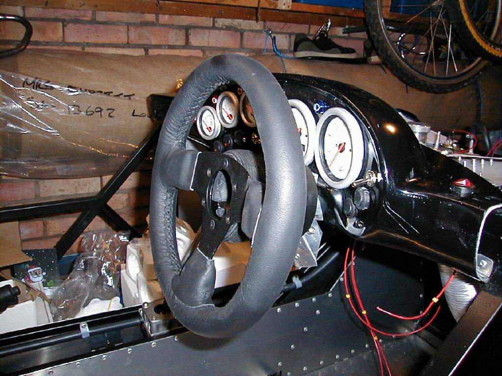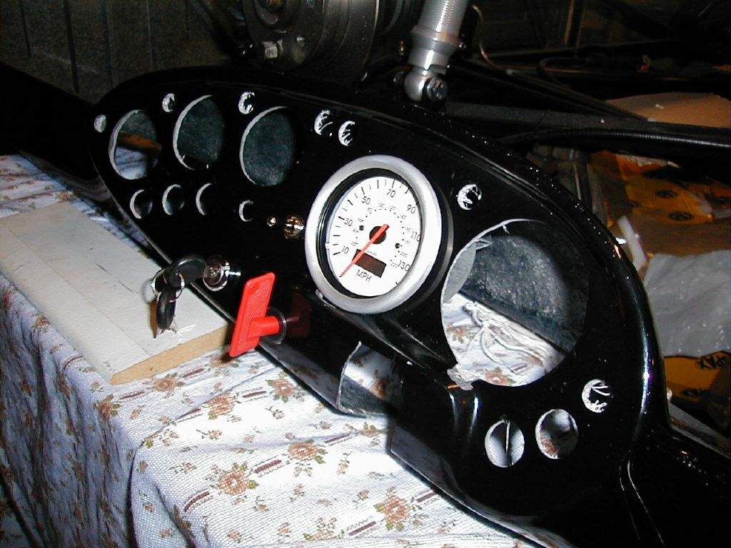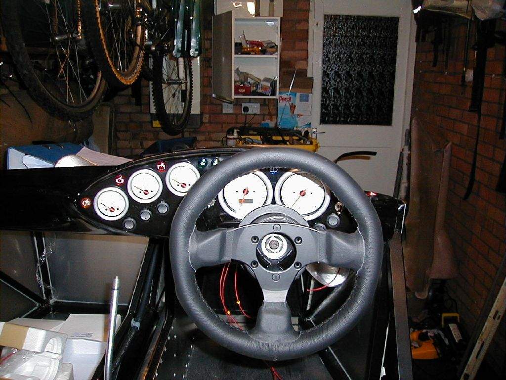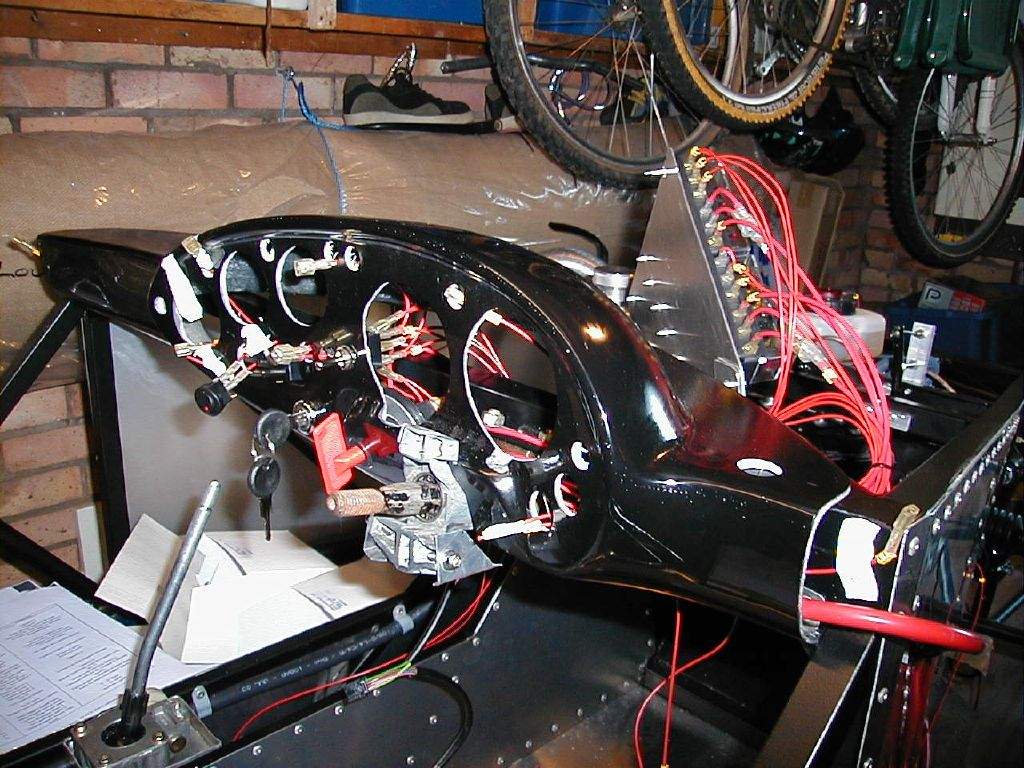 5th January: 1h30m: Decided it was time to get the fuel level sender fitted, so I can then secure the fuel tank and wire up the sender. The sender needed both the swingarm and the mounting rod to be shortened. I realised that the sloping top surface of the tank would throw out the calibration of the sender if I used the standard greengauges recommendations for the length of the two parts, so I used good old common sense combined with a little trial and error, and a multimeter check on the output range of the sender, to decide how much to shorten. I then chain drilled the top of the tank to begin opening up the 43mm hole required for the sender. 6th January: 1h15m: Very impressed with Laser Tools- replacement mandrel arrived in the post today. Let's hope I don't have to phone them again too soon… Finished cutting out the hole in the fuel tank, finished off the edge with my newly acquired dremel-type multi tool. Checked the sender fitted in place, then marked out, drilled and tapped the 5 holes for the securing bolts, then trial fitted the sender in place. The tank will need a good clean out to get rid of all the swarf! 7th January: 3h30m: Started marking out the dashboard for cutting out in order to mount the instruments and switchgear. I removed all of the cardboard templates, and then covered the dash pod with masking tape to enable me to draw directly on the dash. Chain drilled the apertures for the speedo and tacho, then used the multi-tool again to smooth the holes. Also mounted the right hand toggle switch and 2 rocker switches below. 8th January: 1h30m: Marked out the rest of the dash and had a last minute change of plan for the layout of the warning lights! Hope it works out OK... 9th January: 4h00m: Cut out the rest of the holes in the dash. Fibreglass dust is now everywhere...! Re-shaped the steering column surround to clear the lower edge of the speedo and tacho. 10th January: 3h30m: Had a think about how to mount the battery isolator- I want to mount it flush with the front face of the dashboard. Came up with a cunning solution. I made a bracket that is secured in place at the rear of the dash by both the ignition switch and the nearest toggle switch. This meant a lot of fiddling to get the right shape and size, but I'm really pleased with the end result: Remembered that I hadn't drilled the hole for the odometer reset button (which, rather strangely, is remote from the speedo), so mounted this between the two left hand toggle switches. 11th Jan – 18th Jan: 10h00m: I'm not going to break these days down, as they all consisted of wiring in some form or other! A test on one occasion revealed I now have a working horn and heater blower (these are about the only 2 items I can check at the moment), so I must be doing something right. Whilst on the subject of wiring, I should explain a little more about how I'm going about it: I'm using 2 colours of cable, predominantly red, with black being used for earth runs back to the chassis. The majority of the wiring is using 16.7A rated thinwall cable from Vehicle Wiring Products, with any high load runs using 33A cable. I also bought a pack of slide on cable markers from VWP, so I'm numbering each end of each run of cable (with the exception of short runs, e.g. between a fuse and relay)- the only way to keep control of the wiring given I'm not using different colour cables. I'm not wiring in any particular order, I'm just marking cables off the wiring diagram as and when I fit them. I've bought a couple of multi-plug connectors for making connections to the front lights- this will make it easier to remove the bonnet should I need to access the radiator or any other stuff in the front end. 19th Jan: 1h30m: Fancied a break from the wiring, so had a look at connecting the heater blower to the aluminium duct. Until recently I was struggling for ideas on how to do this without it looking a complete bodge job! However, I've been keeping my eye open for a suitably-shaped bit of plastic, and had found a section of the air intake duct from a Volvo. With a bit of a cut and shut job to re-orientate one of the bends, I was in business. I thought for a while about how to reconnect the 2 halves of the plastic back together, and the solution, whilst approaching bodge-dom, seems to actually look very neat- black electrical tape is always handy… I also used this to connect the duct hose to the plastic. Whilst the perfectionist in me doesn't like the idea of using tape, it actually looks pretty good. Amazingly, the plastic duct (from the Volvo) fitted straight into the heater blower (from the Fiat 126) with a snug 'interference fit'- how jammy is that? 20th Jan: 1h00m: A bit more wiring! 21st Jan: Ordered my ignition ECU! Having originally been thinking Weber Alpha, I then moved towards Omex, and I've finally ended up ordering an Emerald system! This will easily upgrade (via software changes) to throttle bodies in the future, has data logging functionality, can control the radiator fan and fuel pump via relays, and generally seems to be a well respected system, all for a similar price to the other 2 systems I had been considering. I also had a chat with Dave Walker, who runs Emerald, and he seemed to know his stuff! The ECU will come with a base map for the Zetec, and I've gone for the optional water temperature sensor to enable the ECU to control the fan. I can then change the temp. at which the fan cuts in and out via software, rather than faffing around changing the switch, and also I've got the facility to tweak the ignition timing whilst the engine is coming up to temp.- the more things to tweak the better! J 24th Jan: Emerald ECU arrived. 28th Jan: Snow! 2hrs to get home from work (usually 20mins) and no work done on the Mojo! 29th Jan: 1h30m: Package arrived from Vehicle Wiring Products. Continue with wiring…