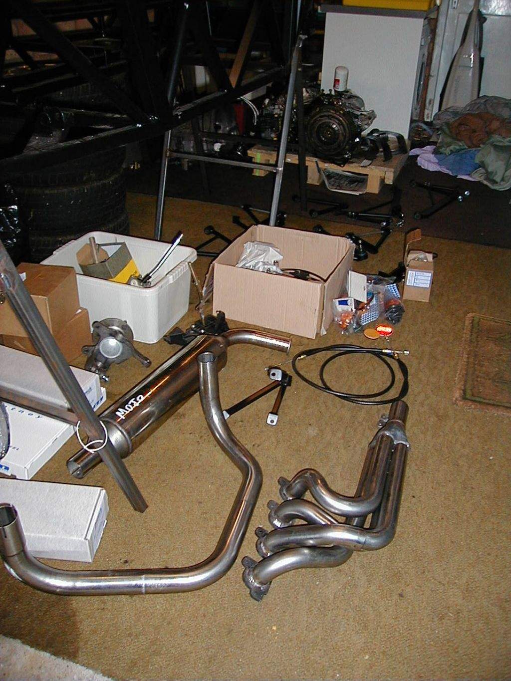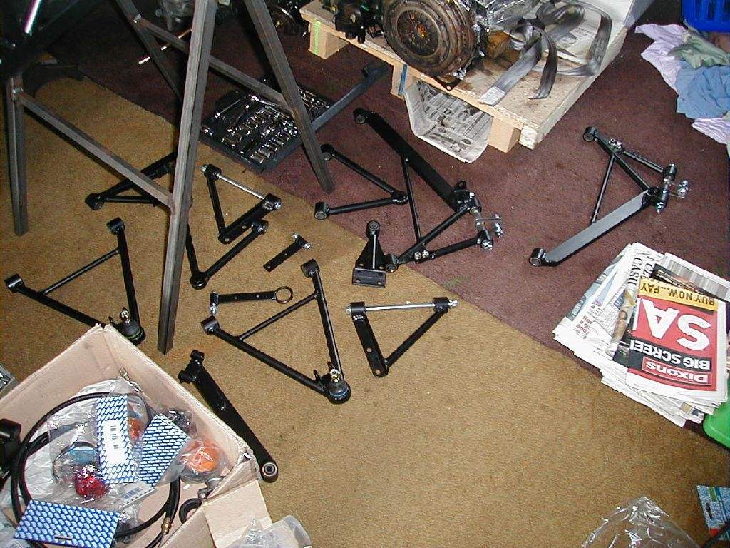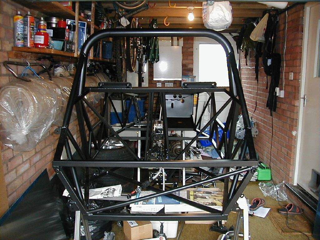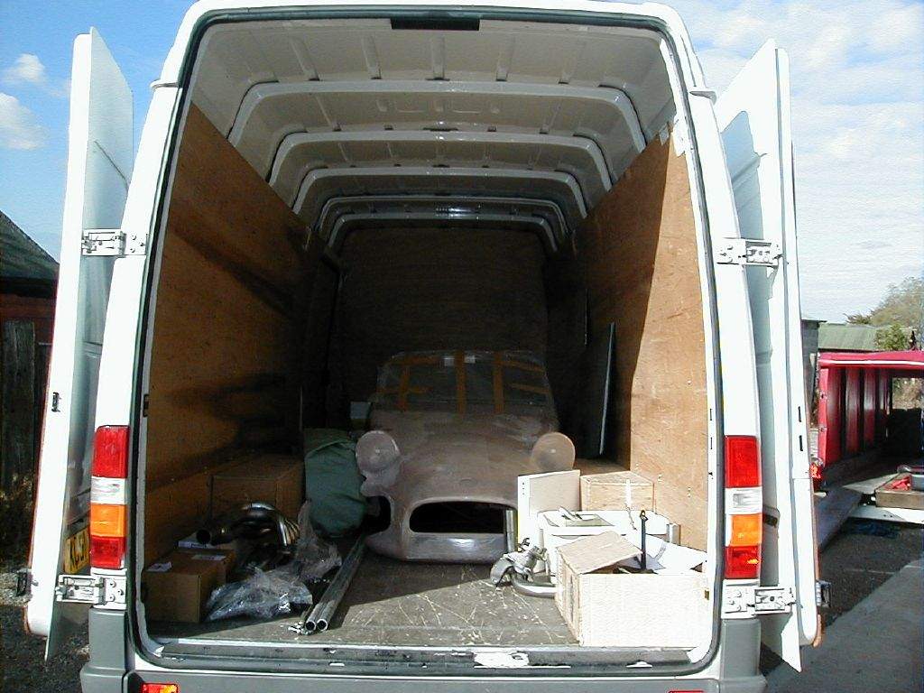 It's actually beginning to look quite small now, as though it might actually fit in the back of a Mojo! Also cleaned up the block, mainly from the oil that had come from the leaky cam cover. 6th October: 0h30m: Removed the sump to take to Sylva on Saturday. 7th October: 0h45m: Cleaned the sump using degreaser, and then rinsed with water and washing-up liquid. 8th October: 0h45m: Finally got round to putting the carb I stripped down ages ago back together using new gaskets and seals. 9th October: 2h00m: Stripped down and rebuilt the second carb. 11th October: Collection day! Set off for Bardney at 8.15am, arriving at about 10am. Jeremy was helping to make some mods to Tony Brumfield's Striker, a very nice bike-engined hillclimbing machine. Gave Jeremy my sump and lower steering column for modification- they will be sent back to me along with a few other items that weren't available for collection on the day. Went through the list of things that were to be taken away, so that we knew what needed sending on, and then started loading. Everything went very easily into the Merc Sprinter. Finally took some pics of a Mojo 2 mid build, for my reference, and had a long chat with Jeremy about gear linkages- the one I have been sent by fms is different to the one Jeremy has used before. It may still work, but requires a bit of ingenuity; other wise I'll revert to Jeremy's normal setup. Since Jeremy's race car is now a pile of bits in the corner of his workshop after the recent crash at Cadwell Park, he loaned me a couple of his gear linkage parts to ponder... Arrived back home and unpacked the van, all finished by about 5pm. Here are some piccies from the day: