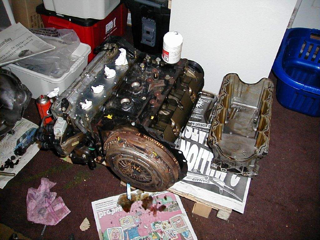After removing the exhaust manifold it became clear that the engine has a minor oil leak from the cam cover- not a major problem as I intend removing it anyway to check the condition of the cams. Hopefully a new gasket will sort the problem. Further bits will be stripped off the engine in the next few days... 4th October: 1h00m: Removed a few more things off the engine-