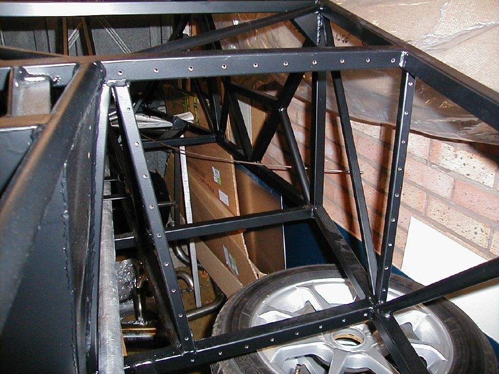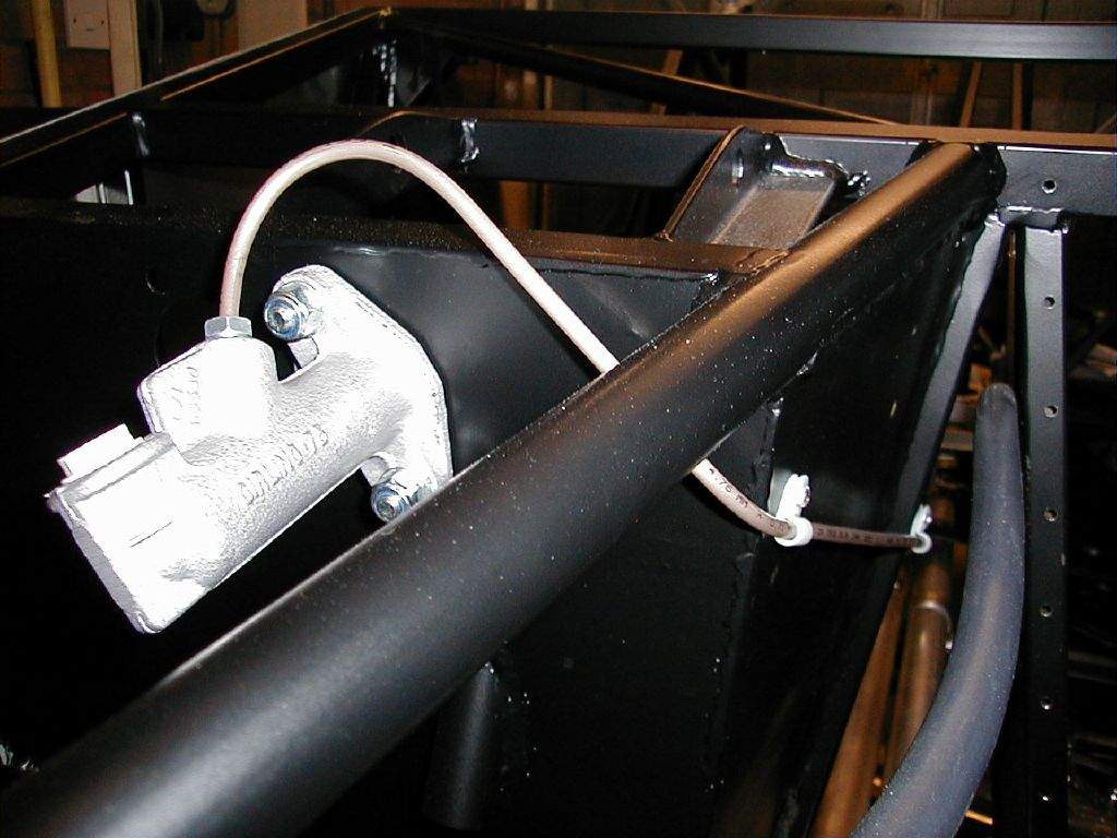 12th October: 6h00m: Spent some time pondering the gear linkage setup, and whether I would be able to use the parts I had bought from fms. Cut out a cardboard template for the first aluminium panel- the drivers side of the tunnel. Transferred the template to the first 18G sheet and cut out with a jigsaw, filed the cut edges, and then made the 20mm fold along the rear edge to wrap onto the rear bulkhead. At this stage I could trial fit the panel... at which stage I discovered my first mistake. Hmmm. The panel fitted perfectly everywhere except along one edge, so there was nothing for it but to start again- frustrating, but I had half expected the first panel to be a pain! Thankfully I could use the first panel as a template for the second attempt, with just the inaccurate cut changed. I cut the new panel out, and then called it a day... 13th October: 1h45m: Made the fold in the transmission tunnel panel, and did a trial fit. This time, things were looking better, but a lot of fine tuning was required around the footwell crossmembers to get a good fit whilst clearing the weld material. Here's the result: 14th October: 2h00m: Spent some more time pondering the gear linkage issue. Disassembled my linkage a little further to see if I could make things work. May have found a solution, but still need to double check clearances with other stuff that runs through the tunnel. Marked out the passenger side tunnel panel, using the driver's side panel as a template. 15th October: 2h00m: Cut out the second tunnel panel, bent the rear edge as before and then spent some time fettling the fit. No problems this time! Pondered the gear linkage some more...! 16th October: 2h00m: Had a new idea for how to fit the gear linkage. It would require an aluminium plate to fit between the top tunnel rails, folded up at the edges to give extra strength. Decided it was definitely worth a try, so began fabricating the plate from 18G. 17th October: 4h00m: Trip to the scrap yard for the Sierra steering column outer that I foolishly left behind a few weeks back. Stopped off at the local Ford dealer to order a few bits and pieces. Continued finishing the gear linkage plate. This was a fiddle as two cut-outs were required, plus 4 holes for mounting the linkage. 18th October: 4h00m: Marked out & cut out the passenger footwell end panel, then marked out and centre-punched rivet holes. Clamped into place and then did my first chassis-drilling- scary! All went well, I then removed the panel and de-burred the holes with a hand-held 6mm drill bit. 19th October: 2h00m: Marked out the driver's side lower footwell outer panel, then centre-punched, drilled & de-burred. I'm not riveting the panels in place yet as it's best to do the tunnel panels first, and these are best left until after sorting out the routing of some of the stuff that runs through the tunnel- mainly the radiator pipes, but I may also sort out the rear brake line, fuel line and heater hose (I'm intending driving the Mojo every day remember!) at the same time. Trouble is, the radiator pipes should be bent to suit the top and bottom hose of the radiator, and I don't know which radiator I'm going to use yet... So I'm stuck in a bit of a vicious circle! 20th October: 0h00m: Collected my rivnut tool, plus picked up some plastic P-clips from Maplin. I'm only counting hours spent in the garage, so ZERO hours today! 21st October: 2h00m: Decided to fit the radiator pipes using rivnuts so that the tubes can be removed later for appropriate bending. Fabricated some aluminium P-clips from scrap 18G plate, then fitted my first rivnut. Can you feel the excitement? 22nd October: 3h30m: Finished securing the radiator pipes. Drilled the first two holes on the inner face of the tunnel top rails which will be used as fixings for my custom gear linkage setup- broke 2 drill bits in the process, which called for an emergency trip to Focus DIY! £2.49 for 1 drill bit- ouch, won't be going there again. My plan for fixing the gear linkage mounting plate was to use rivnuts to enable easy removal in future- oh what a mistake! I didn't check that the rivnut tool would phsically fit to enable me to fix the rivnuts, and of course when it came to that stage, it was too big. So now I had 2 great big 6mm holes which were good for nothing. I had a few futile attempts at fitting the rivnut with 'unconventional' methods, then pulled my hair out some more whilst trying to come up with 'plan B'. In the end I decided conventional riveting using the large rivets destined for the floor panel would work (and yes, the rivet tool would fit this time), so I drilled a further two holes and, hurrah, fitted the plate in place, and then fitted the gear lever mechanism to the plate. I then spent a minute or two 'practising' changing gear (despite the fact that the gear lever wasn't connected to anything at all...) before calling it a day. 23rd October: 1h30m: Centre-punched the driver's side tunnel panel, then clamped it in place and began drilling through and into the chassis rails. New 4mm drill bit didn't last long, blunting after about 40 holes, so have to give up. I'm going to stock up on plenty of 4mm bits to avoid future frustration! 24th October: 6h00m: Equipped with some new drill bits, I finished drilling the driver's side tunnel panel, then de-burred ready for fixing. Before finally fixing these side panels, there were some more jobs to do in the tunnel (sounds like the Great Escape!). I fitted the master cylinder for the rear brakes and then began bending the rear brake line into shape. I wanted to make a neat job of this, so took some time getting the straight runs 'straight' and forming smooth bends. I ran the line along the inside of the right-hand top tunnel chassis rail, secured using P-clips riveted in place at approx 200mm intervals. The rear T-piece / brake pressure switch will be fitted just to the right of the tunnel on the bottom chassis rail in the engine compartment. I then ran the fuel lin