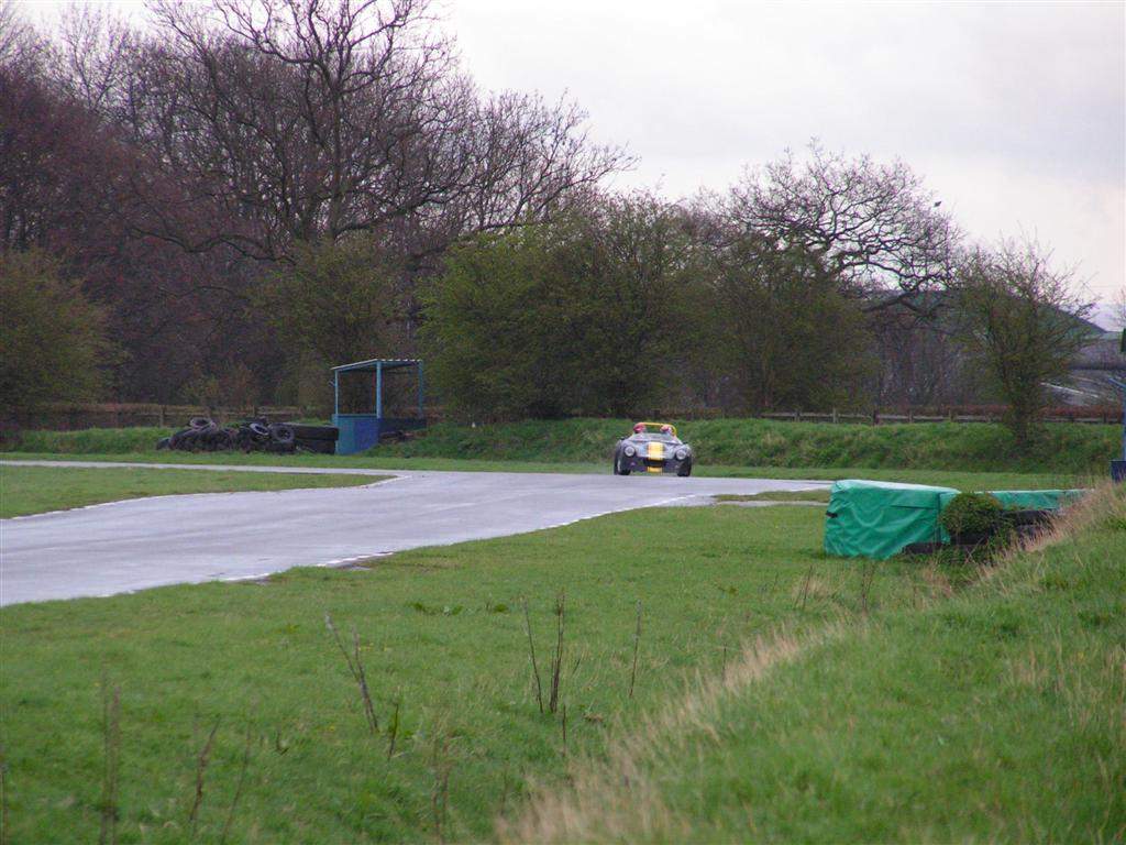 Curborough sprint track - 20th April 2006 For an introduction to Curborough, please see the 2005 visit. Unfortunately this visit to Curborough was not as sunny as last year! However, although this made spectating less appealing, it did make for some good fun on the track. I have always been especially cautious when driving the Mojo in the wet, so this was a good opportunity to see what the balance was like in wet conditions, and I was pleasantly surprised. I did still manage a couple of spins, but on the whole you could slide the car around a little on the exits to the corners- I found that a 'slow in, fast out' approach works best, otherwise the weight at the back end of the Mojo can end up doing the steering on the way in to the corners. Far better to be neat and tidy to the apex, and slide the tail out a bit on the exit. It is difficult to know if my softer rear springs made the car more friendly- certainly there was no problem with understeer, as I had feared there might be in the wet! The recently fitted throttle bodies performed well, the car now seems to have a bit more go at the top end, and sounds really good too. I didn't get any pictures of the Mojo in action, but here are a few of Ruari in his Cosworth Fury- not really the ideal car for these conditions as it would spin the power away in pretty much any gear at any speed- scary...